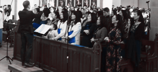 “Đồng thanh ta hát khúc hát … Chúa đã phục sinh quang vinh…”