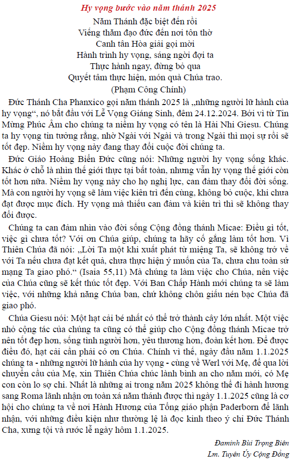 (Nguồn: Hội Ðồng Giám Mục Việt Nam)