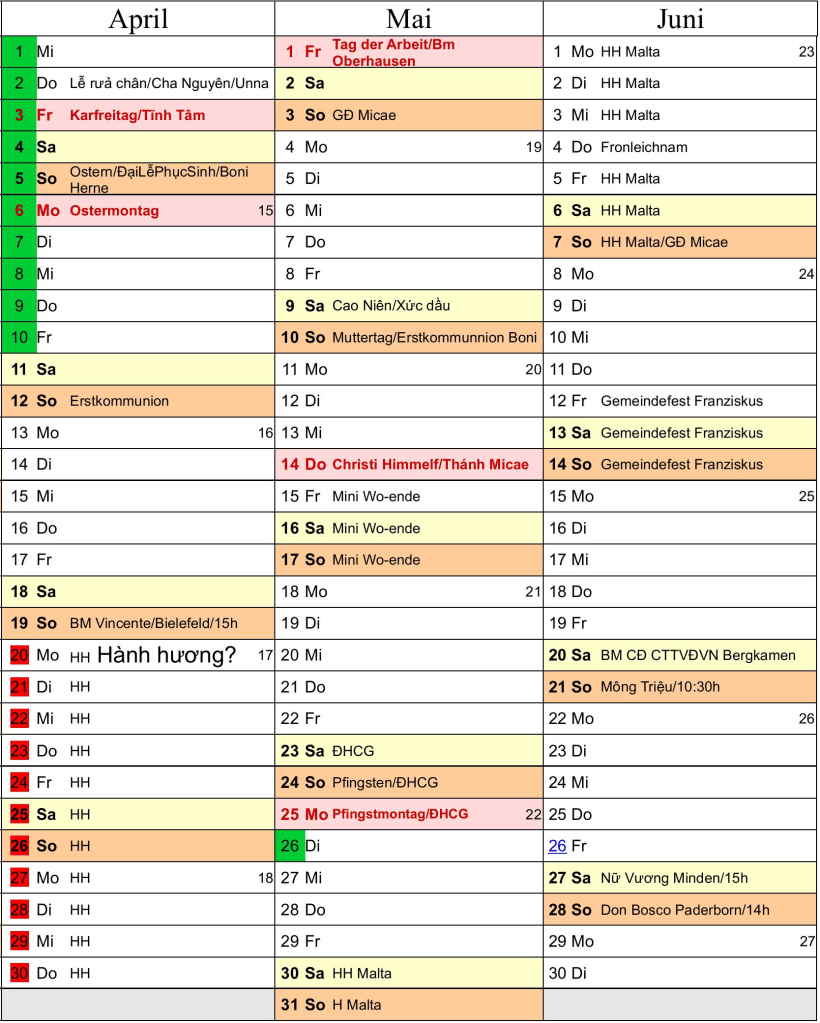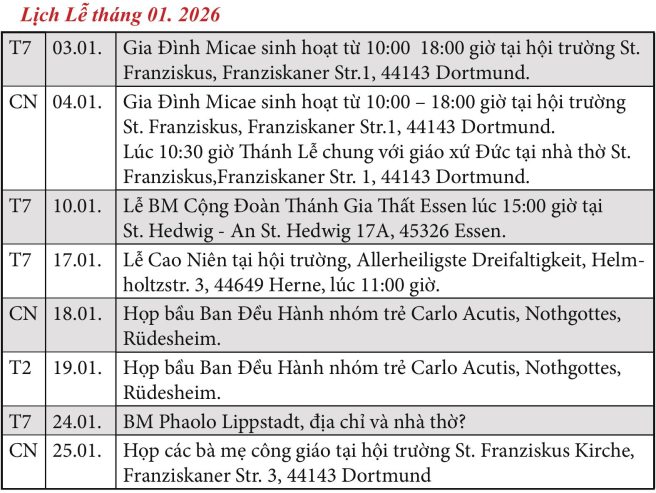 - Hướng dẫn giáo lý và hỗ trợ đời sống đức tin cho người Việt tại Đức.